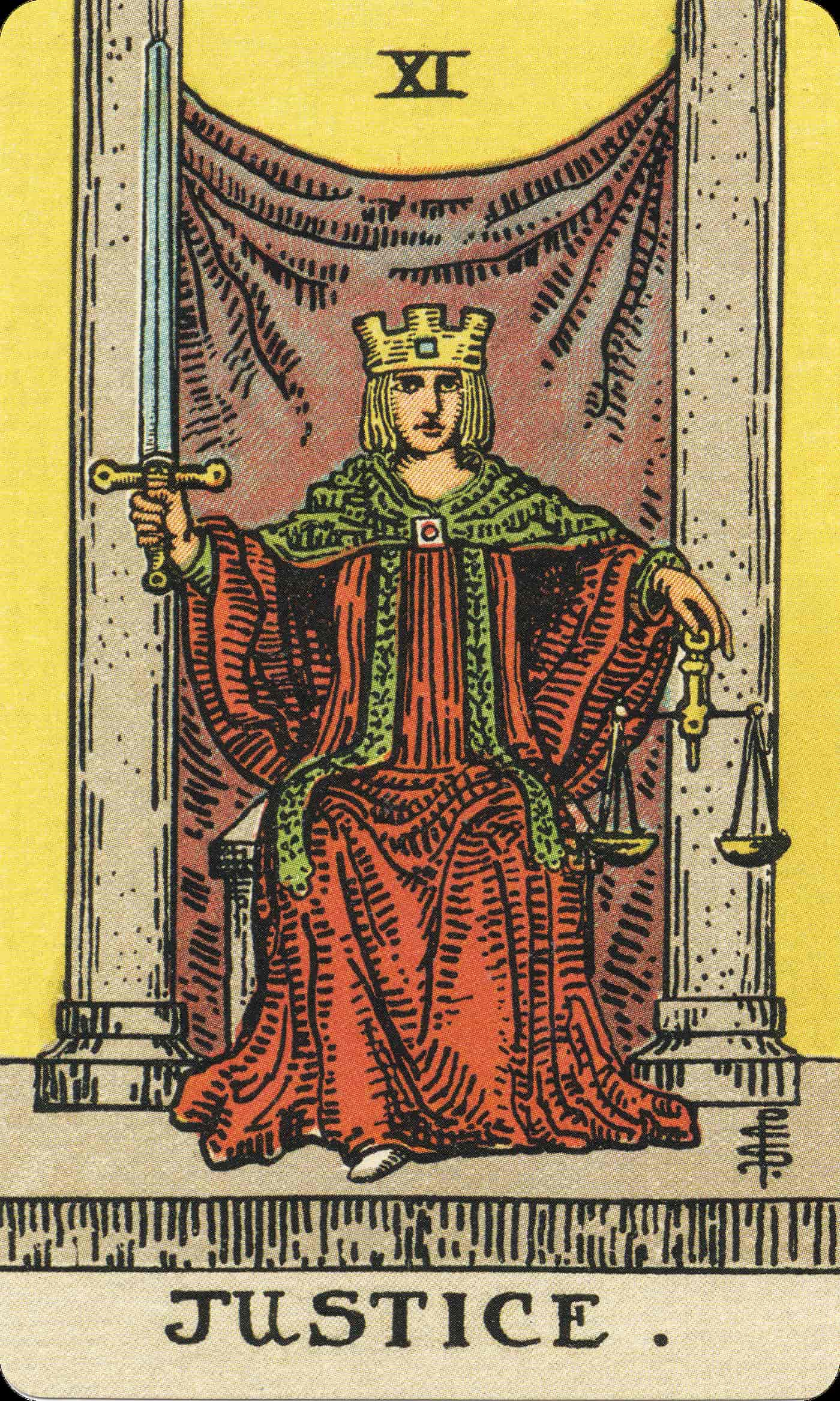 Reversed, Justice can point to dishonesty, avoidance, or inner conflict. It may suggest self-judgment or an unwillingness to see a situation clearly.