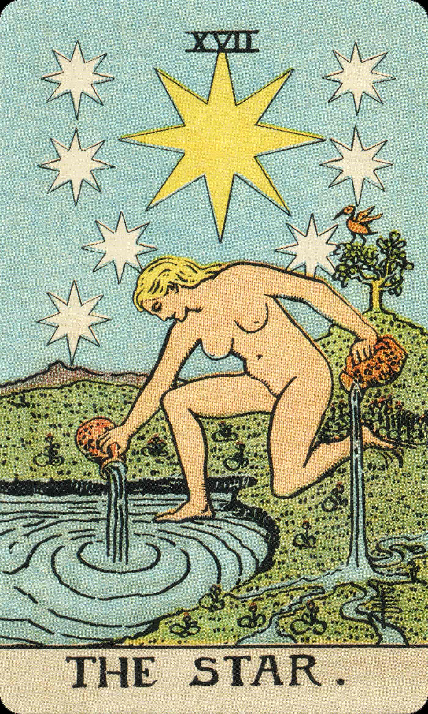 The Star follows the destruction of The Tower with gentle renewal. It represents hope, faith, and spiritual healing.