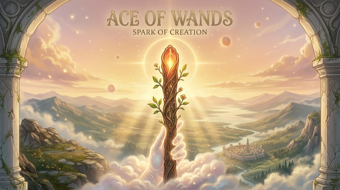 The Ace of Wands represents new beginnings, creative inspiration, passion, and the spark of bold action.