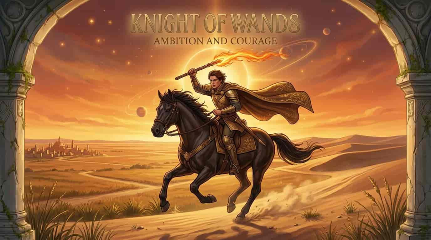 Discover Knight of Wands tarot meaning on Orelune, including action, adventure, love insights, career pursuits, symbolism, yes/no guidance, and free tarot reading interpretation.