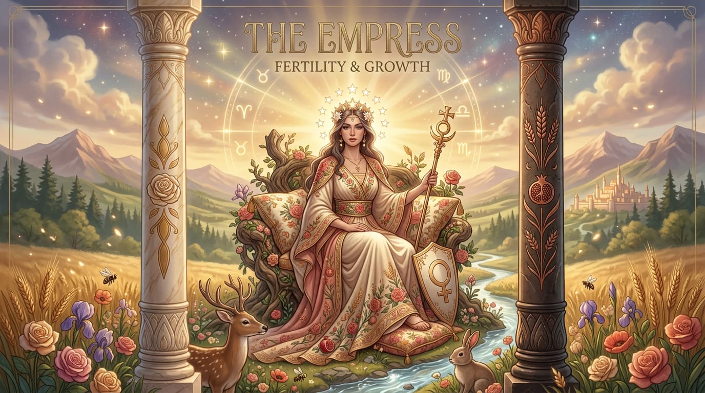 The Empress represents love, fertility, abundance, and the nurturing energy that supports growth and creation.