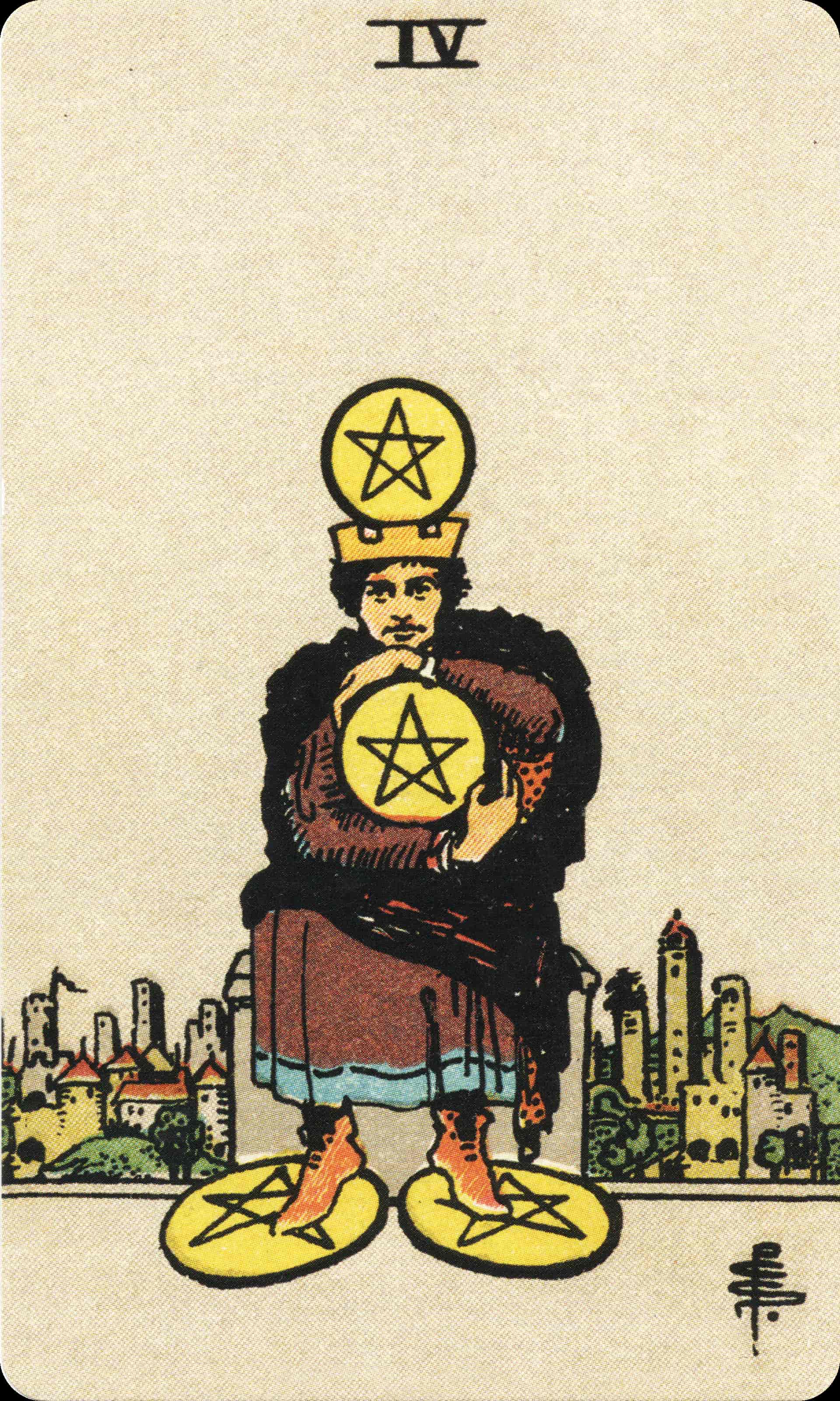 The Four of Pentacles reflects attachment to security and control.