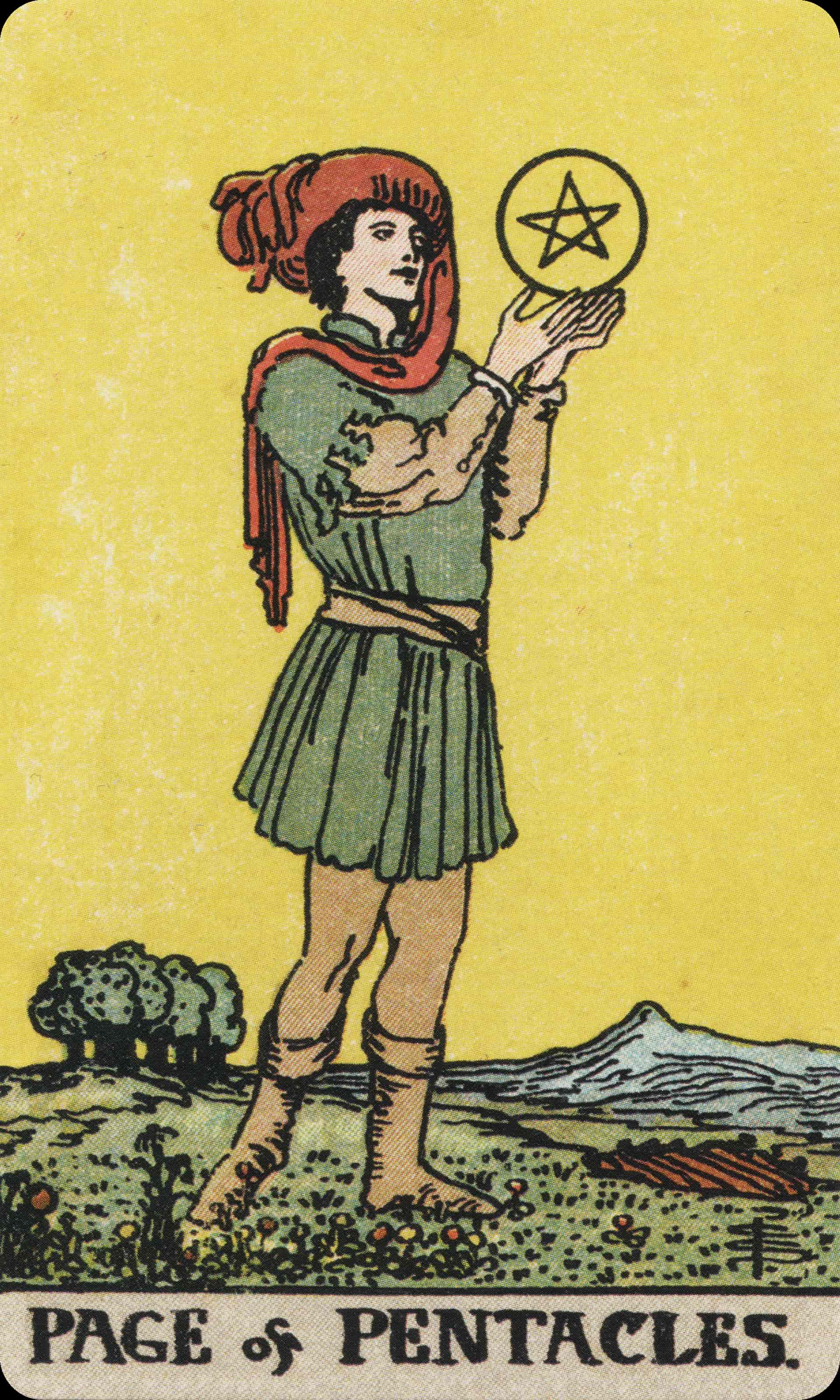 The Page of Pentacles represents curiosity and willingness to learn.