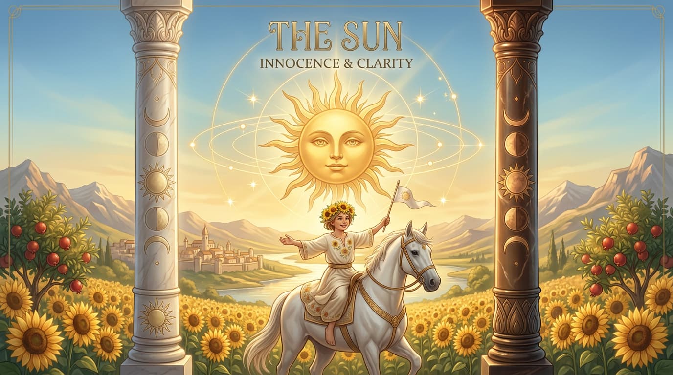Discover The Sun tarot card meaning on Orelune, including success, vitality, love, career insights, symbolism, yes/no guidance, and free tarot reading support.