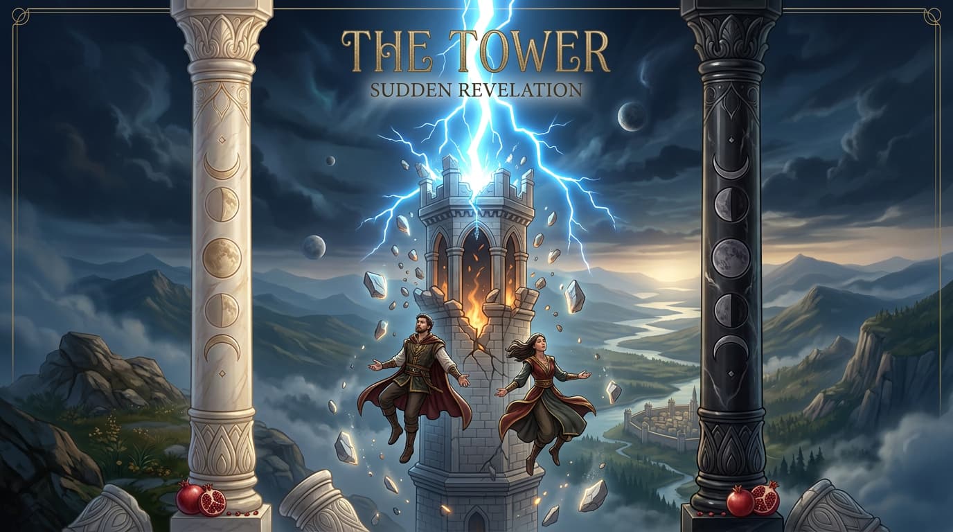 Discover The Tower tarot card meaning on Orelune, including sudden change, upheaval, love, career insights, symbolism, yes/no guidance, and free tarot reading support.