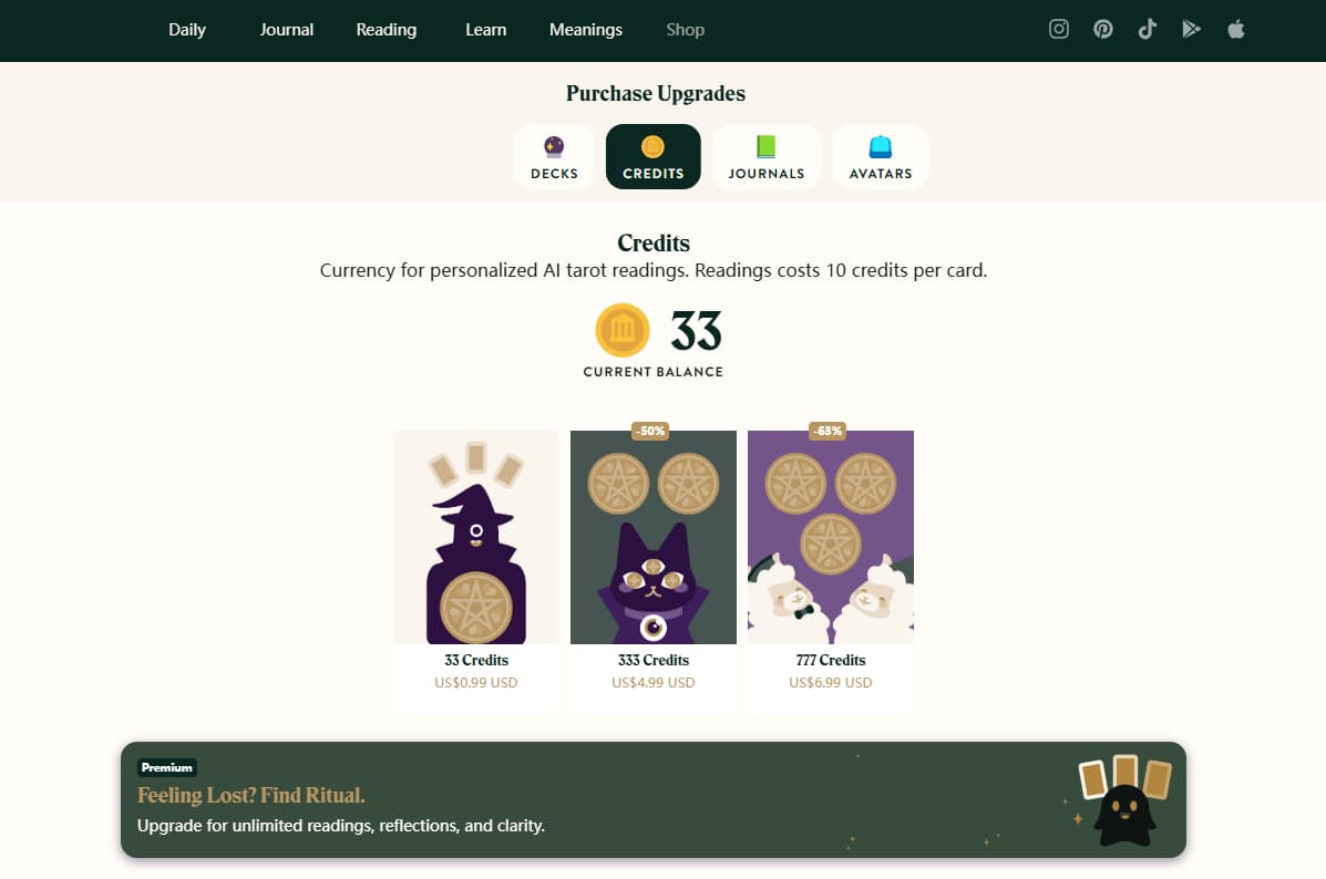 What stands out is how it supports learning. You are not just pulling cards, you are gradually understanding them. For someone who wants to develop intuition or study tarot more seriously, this is a strong environment.