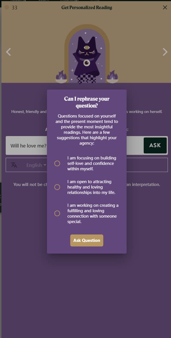 Some systems don't directly answer what you ask. Instead, they reframe your question into something more self-focused, shifting the reading away from prediction and toward reflection.