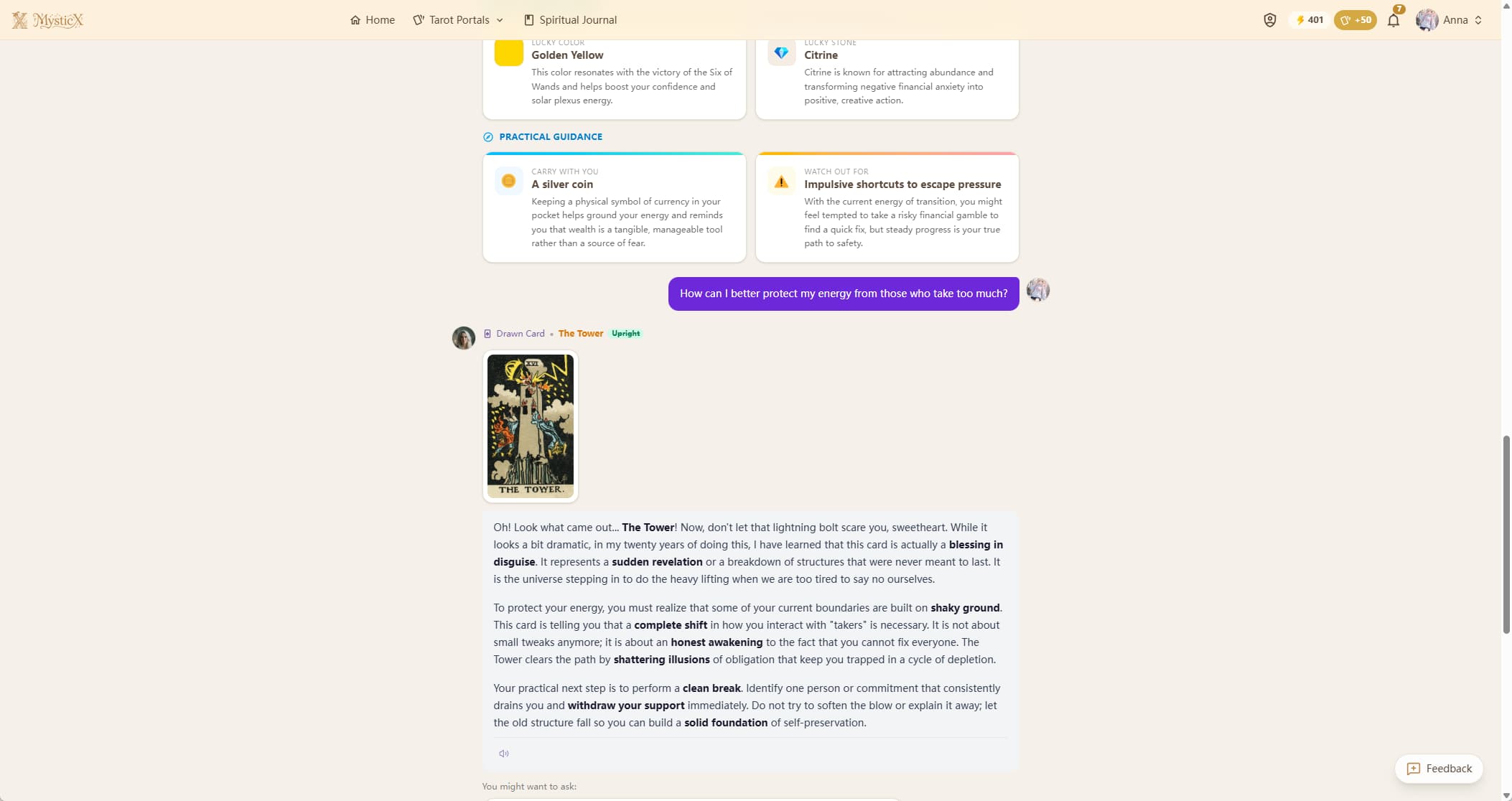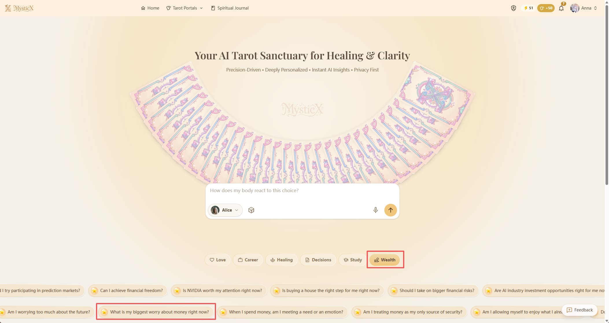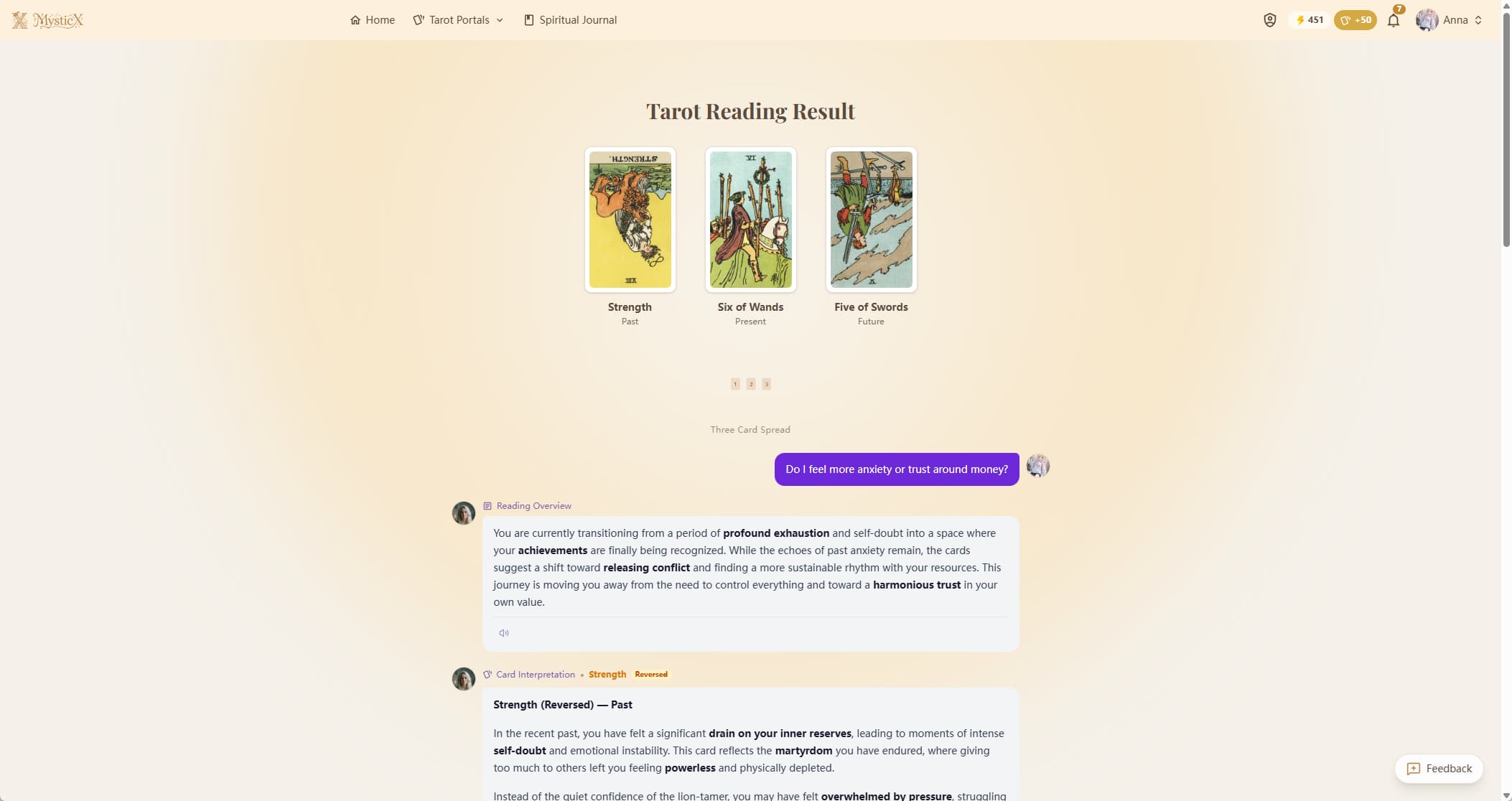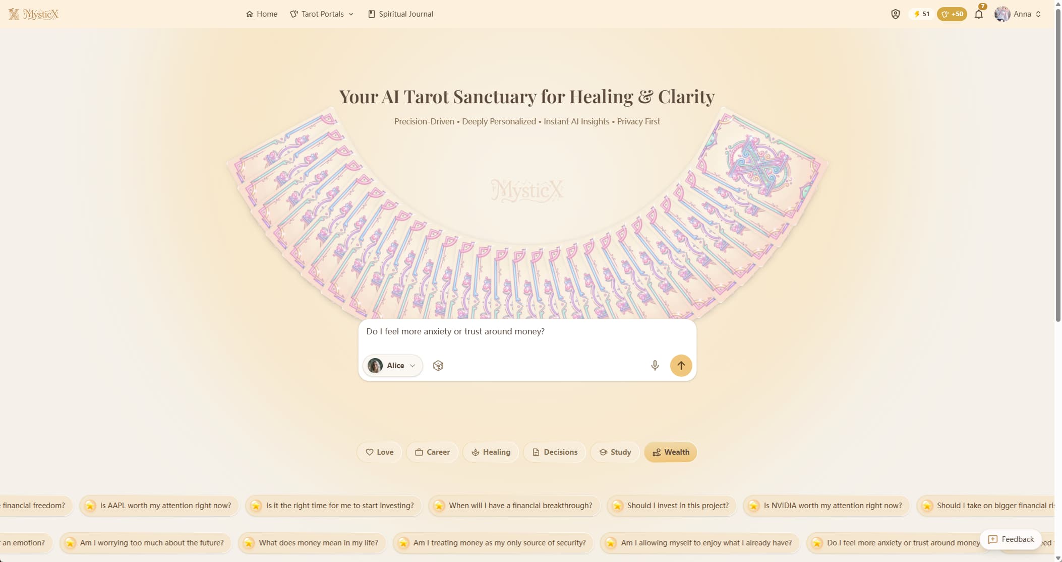 With AI wealth tarot reading, the experience becomes more dynamic: